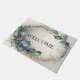 Bienvenue Tapis de porte vert violet Feuille rustique élégant. Unique, beau, design élégant. Facile à personnaliser. Vous pouvez modifier le style de police, la taille et les couleurs. Des éléments correspondants sont disponibles.