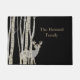 Tapis de porte invitant fait en noir, avec des graphiques d'un bouleau semi-transparent et cerf. Tan texte personnalisé peut être personnalisé, pour lire ce que vous voulez.