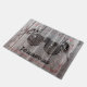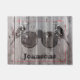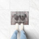 Un tapis de bienvenue rustique imprimé avec une paire de jumelles d'observation des oiseaux et deux pics forestiers Pileated Woodpeckers perchés sur les lentilles binoculaires. Un cadeau parfait pour les ornithologues partout.