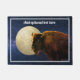 Un buffle américain se dresse sous un ciel étoilé et une pleine lune brillante.