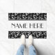 Ajoutez votre nom à ce tapis de porte à thème musical élégant. Dispose d'une clef à aigrettes noir et blanc et d'un motif de musique à clef basse.