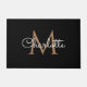 Tapis de porte monogramme noir et or chic. Vous pouvez personnaliser le nom, monogramme et customiser la police et les couleurs pour créer votre propre design unique. Conçu par Thisisnotme©
