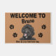 Funny Welcome Home outdoor Doormat Custom Front outside door Grey for Black Labradoodle Dog , personality for Dog Dad ou Maman with Dog Name Owner.