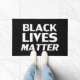 Black Lives Matter blanc et noir moderne typographie audacieuse motif Doormat. Texte en gras blanc sur arrière - plan de couleur modifiable en noir afin que vous puissiez le personnaliser et le rendre unique.