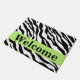 Paillasson Black White Lime Green Zebra Motif de peau Bienven