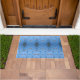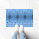 Matelas esthétique bleu avec un motif de surface de la côte orientale asiatique avec un extrait du poème visuel intitulé "Scar Collector" qui a été publié à l'origine dans le volume I de la série Diamond Dust Poems From the Black Sea. Tapis de porte rustique avec un design côtier bleu pour les propriétés d'été en bord de mer de lac ou d'inspiration océanique.