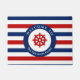 Magnifique style marin intemporel avec gouvernail rouge au centre avec cercle blanc sur arrière - plan avec textes personnalisés sur le dessus et le dessous. Le design a rouge blanc et bleu marine bandes motif sur l'arrière - plan. Un cadeau personnalisé adapté à vos proches. Personnalisable à Zazzle avec votre propre texte pour un design personnalisé. Consultez mon magasin pour trouver les articles correspondants !
