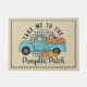 Si vous aimez la chute, alors ce joli tapis d'automne est pour vous! Extraordinaire vieux camion bleu rempli de citrouilles sur un arrière - plan de buffle plaid. Emmène-moi au Citrouille Patch en disant. Un bel ajout à votre décor d'automne !