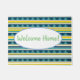 Bleu et jaune rayures et triangles, Bienvenue, texte personnalisé.