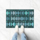 Motif moderne de style vintage du milieu du siècle avec des boules géométriques, des formes, des points et des lignes. Les tons bleu foncé et vert.