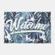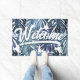 Paillasson Boho Tropical Bienvenue Feuilles de la Jungle Bleu