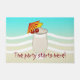 On peut y voir une photo d'une pina colada et on peut lire "La fête commence ici !"