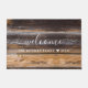 Tapis de bois d'accueil rustique personnalisé avec nom de famille et année établie.