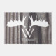 Patiné vieil imprimé en bois gris arrière - plan avec silhouette en bois d'orignal blanc et votre nom de famille personnalisé et monogramme en blanc.