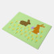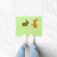 Ce somptueux tapis de portes comporte une paire de mignons petits lapins de Pâques entourés de fleurs de jonquilles jaunes. Les lapins sont bruns avec de grandes oreilles, des yeux noirs et des queues blanches moelleuses. L'un des lapins tient un oeuf de Pâques avec un joli arc violet dessus et tente de l'offrir à l'autre lapin. Les jonquilles sont jaunes avec un centre orange vif.