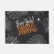 Tapis d'Halloween avec des accents de toile d'araignée et typographie "Boo Yah Ghoul Friend" en orange et blanc. Cherchez ID684 pour voir la coordination des fournitures et accessoires de la partie avec ce grand design.
