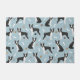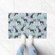 Des chiens de Boston Terrier mignons avec des manteaux noirs et blancs s'assoient et tiennent des os de chien éparpillés et des motifs empreintes de pattes.