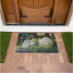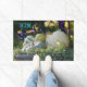 Botanique Autumn White Citrouille Cornucopia Photo Doormat. Laissez le riche trésor d'automne vous remplir l'esprit de belles pensées. Cette image capture les citrouilles gris-vert des teintes cool et le squash de couleur pâle magnifiquement arrangé avec les chutes Silver en cascade.Les lumières d' Aqua et de Purple Fairy apparaissent comme des bokeh dans cette profondeur de champ peu profonde photographiée au Maine Coastal Botanical Garden. Personnalisez avec votre Monogramme à Aqua.