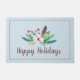 Le tapis d'entrée Festive de style Boho comprend des branches de sapin, des plumes, des saints, des baies et des fleurs blanches sur l'arrière - plan bleu. Personnaliser avec nom, message saisonnier ou autre texte festif