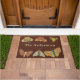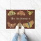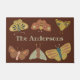 Ajoutez une touche personnalisée à votre maison avec ce tapis de bienvenue. Il présente des illustrations d'art folklorique de papillons de nuit dans des tons terre de jaune, vert, brun clair, rose et bleu contre un arrière - plan brun chaleureux et est prêt à être personnalisé avec votre nom.