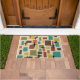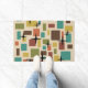 Un design d'art abstrait simple des années 1950 avec des carrés arrondis et des rectangles dans un motif multicolore déchiqueté.