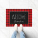 Paillasson Buffalo plaid noir Bienvenue nom de famille script