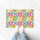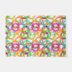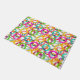 Ce set de table de tissu a un design géométrique de trois cercles imbriqués et répartis dans le design en plusieurs couleurs.