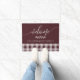 Buffle Bourgogne Et Blanc Chèque Bienvenue Tapis De Porte Personnalisé. Personnalisez ce design personnalisé avec votre propre nom de famille.