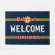 Plaque d'immatriculation californienne style rétro personnalisé Doormat. Faites votre propre tapis d'entrée de plaque d'immatriculation de voiture de vanité. Conception de thème automobile cool. Personnalisez-vous avec votre propre nom ou numéro de plaque. Modèle de typographie en script rouge avec coucher de soleil jaune. République de Californie. Les lettres peuvent être espacées ou rétrécies. Idéal pour la maison, le magasin, le magasin, le commerce, l'entreprise, le bureau etc.