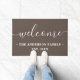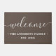 Un grand cadeau pour les jeunes mariés ou les nouveaux propriétaires. Caractéristiques de design de ''welcome'' dans écriture manuscrite moderne et tendance sur arrière - plan brun et votre nom de famille, année famille a été établi dans élégant bloc-lettres classique. Cliquez sur customiser plus loin pour modifier ou redimensionner la police.