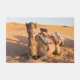 Gros plan sur Camel assis sur le sol et regardant droit - Désert d'Oman
