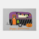 Camper RV de style rétro avec décorations Halloween et texte personnalisable "Happy Halloween" sur arrière - plan gris clair