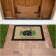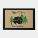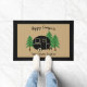 Ce tapis de porte à thème de camper est prêt pour vous à personnaliser avec votre propre nom et votre salutation. Créé avec une jolie petite image de remorque parmi les arbres dans les tons noir et bronzé avec du texte noir et des contrastes arrière - plans. Grand cadeau pour les familles de chalets ou de camping-cars.