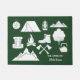 Ajoutez facilement le nom de votre terrain de camping favori et l'état dans lequel il est pour créer votre propre panier de camping souvenir ou ajoutez un nom de famille ou un autre texte pour créer votre tapis de bienvenue personnalisé pour votre cabine de vacances avec un collage de scènes de camping et de matériel extérieur en blanc contre un arrière - plan vert chasseur. Fait un cadeau cool pour les campeurs et tous ceux qui aiment le grand air. Il y a des illustrations de montagnes, d'une tente, d'un feu de camp, d'une lanterne, de bottes de randonnée et plus encore.