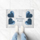 Ajoutez une touche élégante à votre porte avec un Mat de Porte Personnalisé aux Coeurs Bleus. La conception de tapis de porte comprend une paire de coeurs, une vigne feuillue blanche molle contre un arrière - plan gris clair grunge avec une zone à personnaliser avec votre nom. Autres cadeaux disponibles avec ce design ainsi qu'une variété de couleurs.