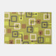 Un motif d'art moderne du milieu du siècle qui a des lignes, des formes dessinées et des carrés dans les tons vert chartreuse, marron et bronzé.