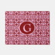 Motif en carreaux d'inspiration marocaine, bordeaux profond / vin avec arrière - plan rose clair, tapis de porte avec monogramme