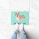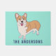 Ce tapis de portes personnalisé fait un grand cadeau pour les propriétaires de Corgi. Il présente une illustration de Pembroke Welsh Corgi chien contre un arrière - plan vert menthe portant votre propre nom ou un message court.