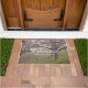 Deux cerfs communs traînant sous des arbres un matin frais d'hiver en Californie du nord sont le thème pour ce tapis de porte. Veuillez essuyer vos sabots avant d'entrer.
