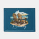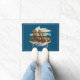 Cute Navy Blue Beach Chaise Beagulls Ocean Doormat