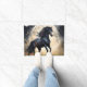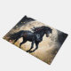 En Face D'Une Pleine lune Dans Un Champ Fleuri, On Voit Un Cheval Noir S'Élevant.