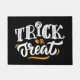 Célébrez l'Halloween avec notre mignon panier ou un tatouage de porte d'Halloween! Le tapis de porte d'Halloween personnalisé contient l'expression "Trick or Treat" en texte blanc et orange écrit à la main contre un arrière - plan noir. Personnalisez le tapis de porte en ajoutant du texte ou des images personnalisés.