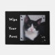 Un tapis de porte d'amoureux de les chats d'amusement comportant un chat noir et blanc mignon de smoking entouré en flottant des coeurs avec les mots "essuient vos pattes !" Customisez cette natte de chat d'amusement pour votre amoureux des chats préféré !