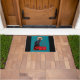 Un tapis de porte pour des amants de l'art vintage de chat comportant l'affiche célèbre de Nouveau d'art par le peintre Théophile Alexandre Steinlen annonçant une visite des comiques de cabaret de Le Chat Noir, le chat noir, boîte de nuit dans Montmartre à Paris. Le chat avec les yeux jaunes brillants et les favoris extraordinaires se repose sur le coin d'une étape rouge, queue se courbant autour du Rudolphe nommé Salis, qui était le propriétaire de club. L'un ou l'autre côté est un panneau noir. Vous pouvez changer la couleur bleue d'arrière - plan en costume avec le bouton de personnaliser.