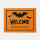 Chauves-souris Halloween éffrayant nom personnalisé porte d'accueil pour entrée maison, porche, hall, boutique, magasin etc. Tapis de porte personnalisé avec typographie effrayante. Décor maison orange et noir avec son nom de famille. Fournitures, décorations et accessoires de fête pour votre maison hantée, bureau ou magasin. Drôle panneau de bienvenue pour porche, entrée, etc. Personnalisez avec un accueil personnalisé. Un accessoire amusant pour les soirées costumées, la fête de la maison, le tour ou le traitement etc. Disponible en petite et grande taille.