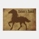 Personnalisez avec votre nom, le nom de votre pays ou ranch. Joli étalon noir dans un effet de peinture rustique sur arrière - plan rustique brun.