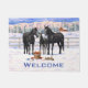 Une famille de chevaux noirs dans leur ranch d'hiver.