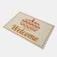 Préparez-vous à l'automne avec ce tapis citrouille à motifs de chevrons branchés et mignons avec le mot "Bienvenue" en épais script.