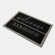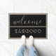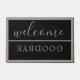 Tapis noir et gris chic, moderne avec le texte bienvenue et adieu en gris élégant texte lettré à la main calligraphie et typographie stylisée sur un arrière - plan noir. Un cadeau design de luxe parfait pour une nouvelle maison, de nouveaux propriétaires ou de jeunes mariés. Conçu exclusivement pour vous par Happy Dolphin Studio. Si vous avez besoin d'aide ou de produits correspondants, veuillez nous contacter à happydolphinstudio@outlook.com .
