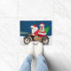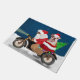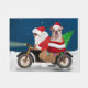 Un Père Noël à vélo livrant un arbre de Noël et un chien anglais Bulldog en cadeau est une idée cadeau de Noël parfaite pour quelqu'un qui aime cette race de chien.
